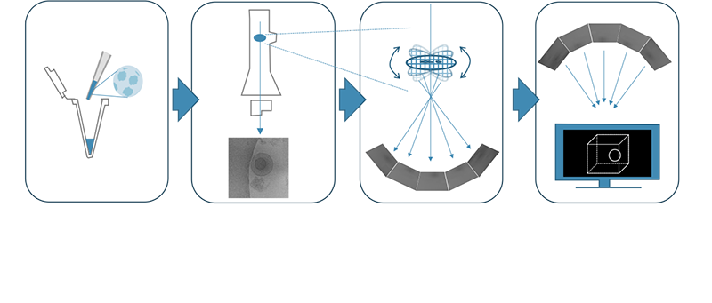 - 4. 画像処理・構造再構築:最終的な3次元構造モデルを作成します。(単粒子解析、電子線トモグラフィ)