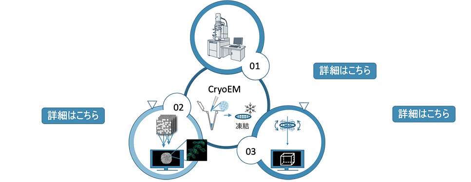 クライオ電子顕微鏡(CryoEM)を用いた3種類の受託サービスをご提供いたします。