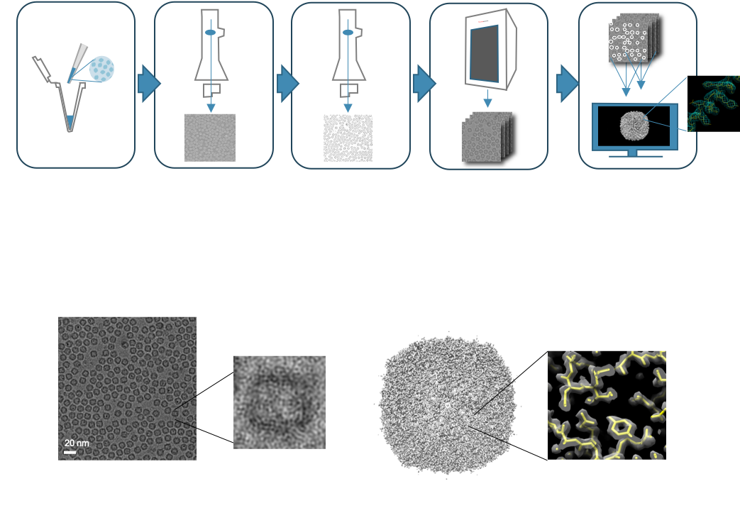 - 4. 画像処理・構造再構築:最終的な3次元構造モデルを作成します。(単粒子解析、電子線トモグラフィ)